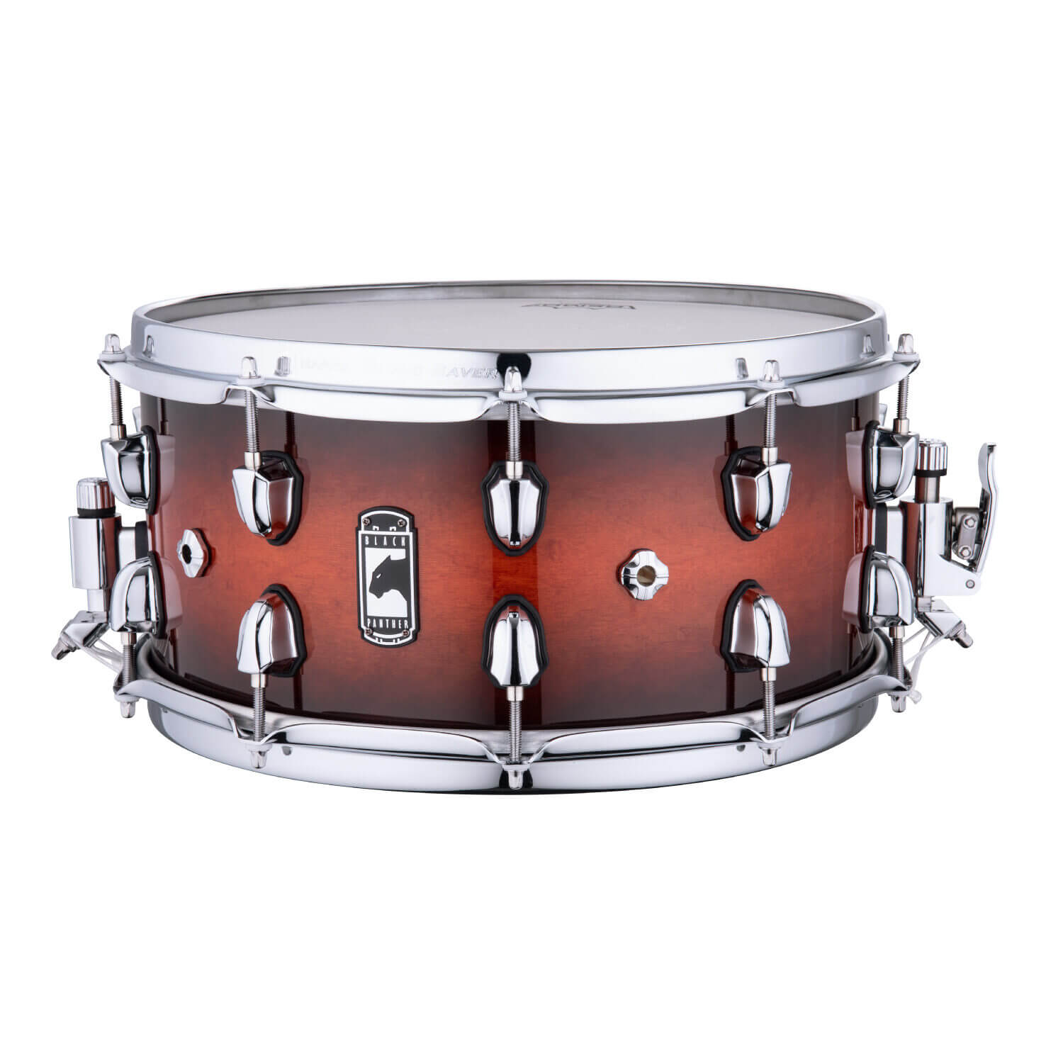 Black Pantherスネアとはそれぞれのモデルに名前を名づけ、その名前にふさわしいデザインと個性的なサウンドを持つスネアシリーズです。スペック詳細もウッドスネアはシェルによって構造と厚みを細かく設定、メタルスネアも材質と厚みのバランスをうまく整えて設計、ラグの形状や位置にもこだわりを持つ特徴的なシリーズです。